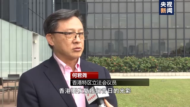 香港特區立法會議員 何君堯:對於香港肯定是可以撥亂反正,令到香港可以恢復我們應有的秩序。所以我感覺就是現在我們經過大亂,現在有大治,就是香港要恢復我們昔日的光彩,就是搞好我們的經濟就是我們的共同的想法。