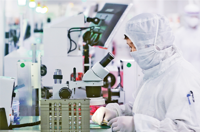 推進科技創新,加強基礎研究、強化戰略科技力量是關鍵,轉化應用、助推産業發展是目標。圖為2021年4月22日,在廣東省東莞市瑞谷光網通信股份有限公司潔凈的萬級無塵車間裏,自主研發的高精密自動化生産線一派繁忙。該公司是專業從事光通信傳輸領域的關鍵核心光器件、光模塊産品及自動化裝備的研發、生産和銷售的國家級高新技術企業。(人民圖片 張進剛 攝)