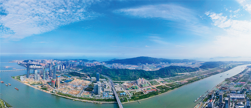 黨中央、國務院高度重視以橫琴為載體促進澳門經濟適度多元發展。習近平總書記多次就粵澳合作開發橫琴發表重要講話,強調要做好珠澳合作開發橫琴這篇文章,為澳門長遠發展開闢廣闊空間、注入新動力。圖為2020年5月1日建設中的珠海橫琴全景。(中新社記者 黃建華 攝)