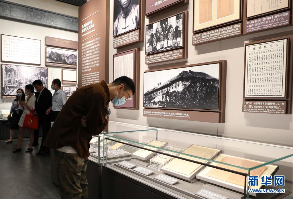 6月3日,參觀者在中共一大紀念館內「偉大的開端——中國共産黨創建歷史陳列」展覽上參觀。(新華社記者 方喆 攝)