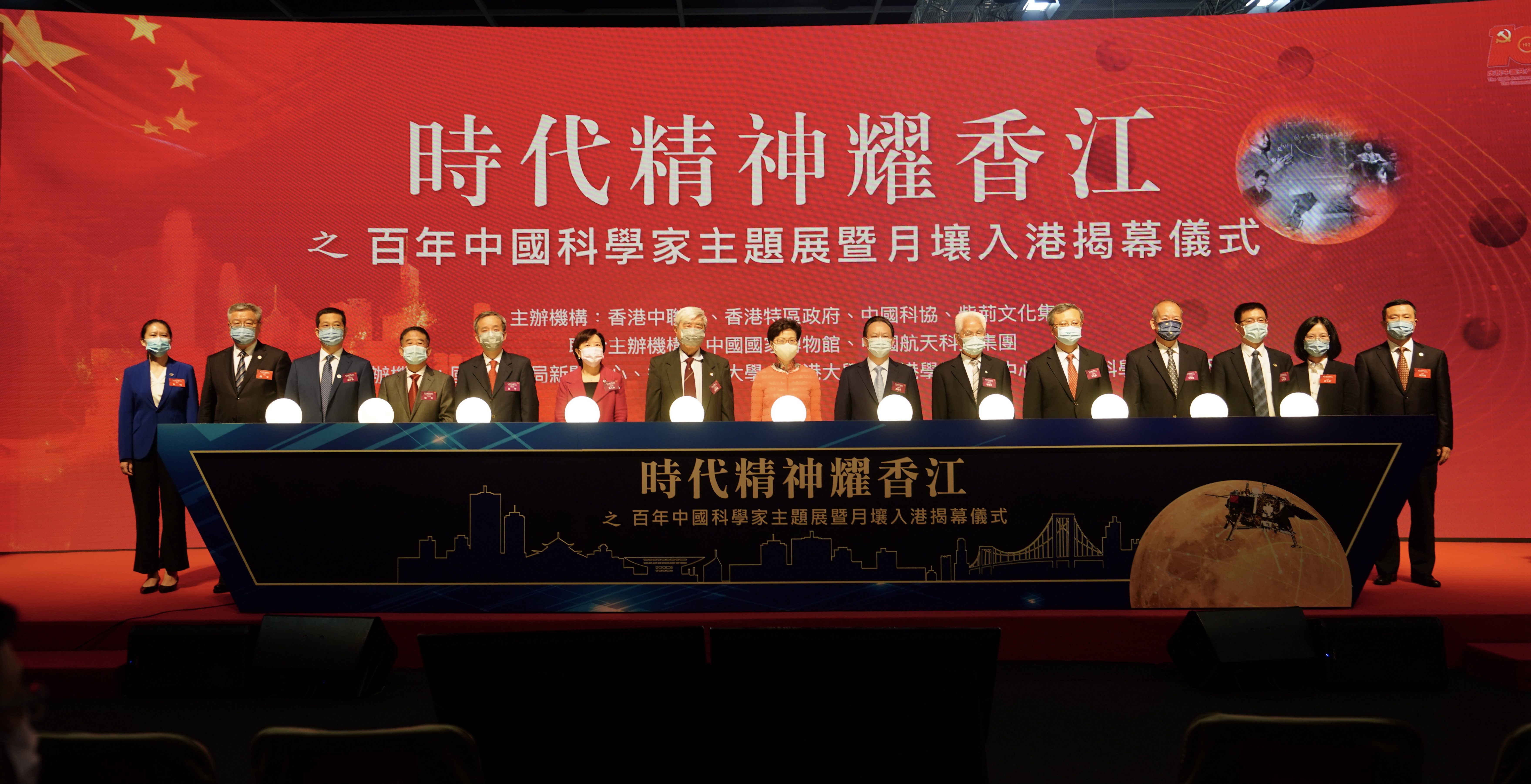 本網訊 6月26日,「時代精神耀香江」之百年中國科學家主題展暨月壤入港揭幕儀式在香港會議展覽中心舉行。香港特區行政長官林鄭月娥、香港中聯辦副主任譚鐵牛、紫荊文化集團總經理文宏武,以及國家航天科學家訪港團成員出席開幕式。