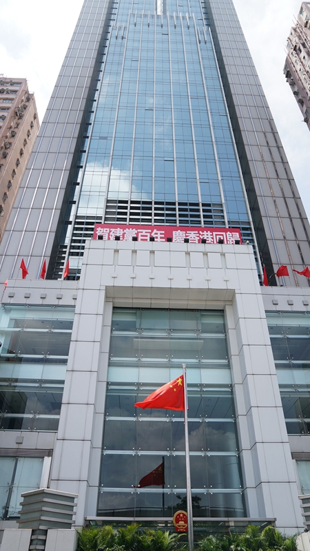 辦公樓前國旗迎風飄揚。(圖片來源:中央政府駐港聯絡辦)