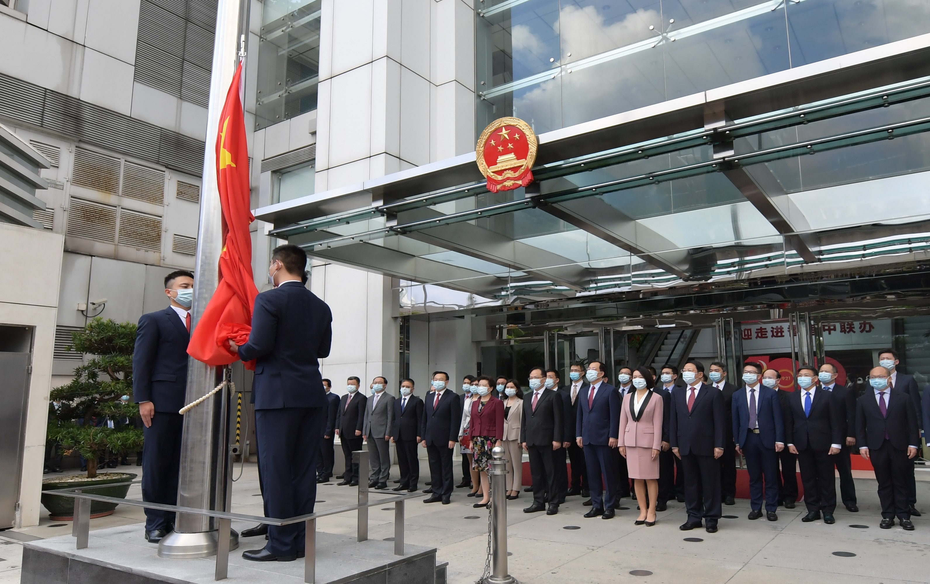 香港中聯辦舉行升國旗儀式。(圖片來源:中央政府駐港聯絡辦)