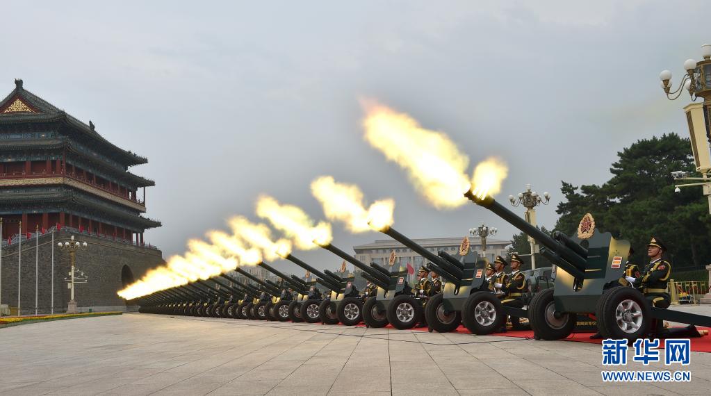 7月1日上午,慶祝中國共産黨成立100周年大會在北京天安門廣場隆重舉行。這是禮炮鳴響。(新華社記者 孟濤 攝)