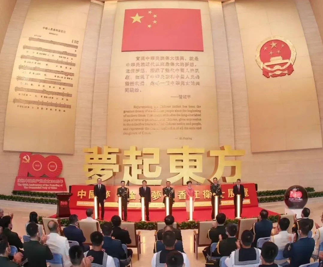 在中國共産黨成立100周年之際,駐香港部隊展覽中心建成開放。7月8日,駐香港部隊展覽中心開放啟動儀式在昂船洲軍營隆重舉行,香港特別行政區行政長官林鄭月娥,香港中聯辦主任駱惠寧和其他中央駐港機構負責人,南部戰區和駐香港部隊有關領導,以及駐香港部隊官兵和香港愛國愛港人士代表參加並參觀展覽。開放啟動儀式前,在展覽中心廣場組織升國旗儀式。
