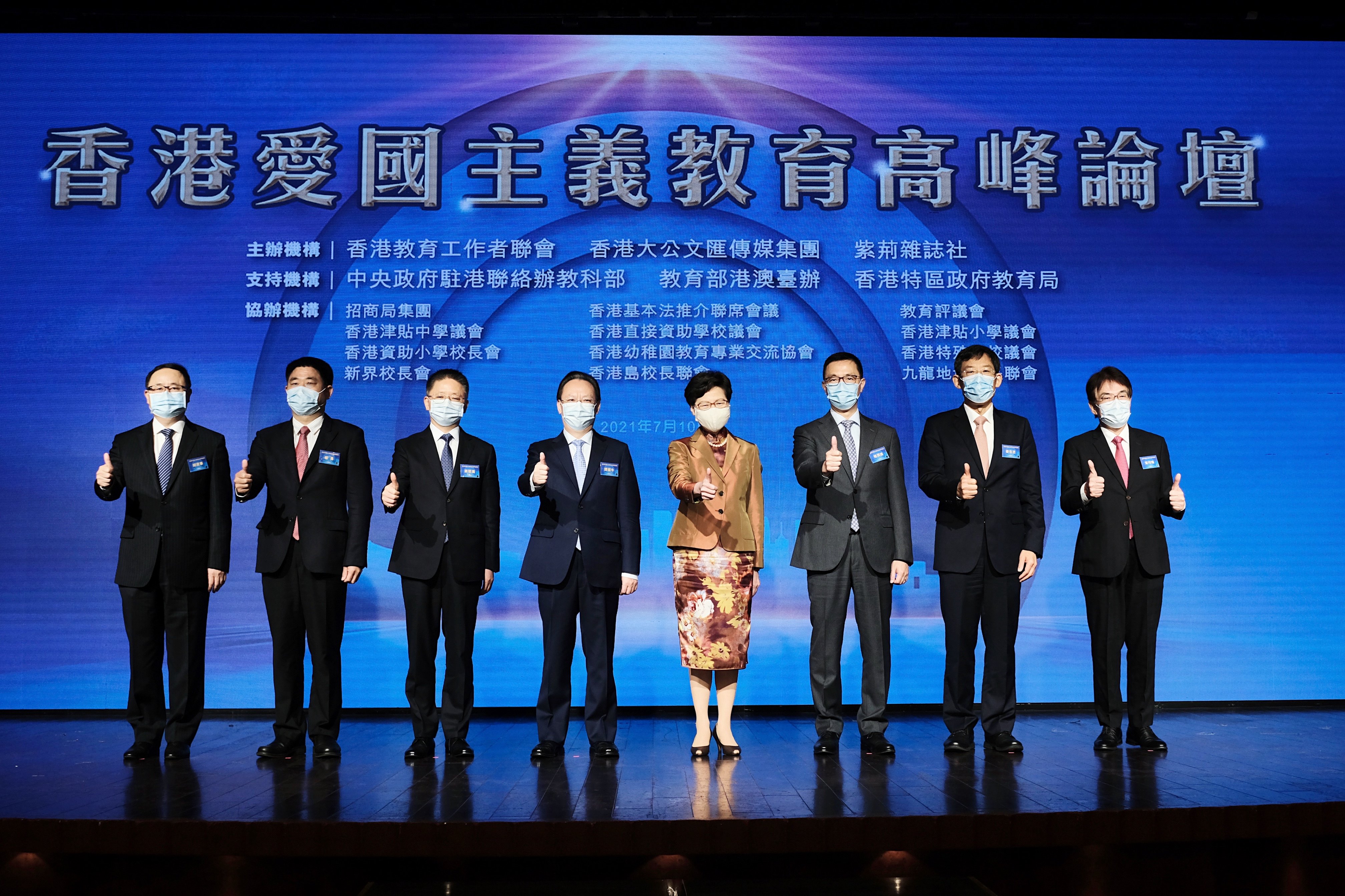 本網訊 7月10日,香港愛國主義教育高峰論壇在港舉行,這是香港回歸以來首次以「愛國主義教育」為主題的大型高端論壇。香港特區行政長官林鄭月娥、教育部副部長田學軍、香港中聯辦副主任譚鐵牛、特區政府教育局局長楊潤雄等主禮嘉賓出席並致辭。
