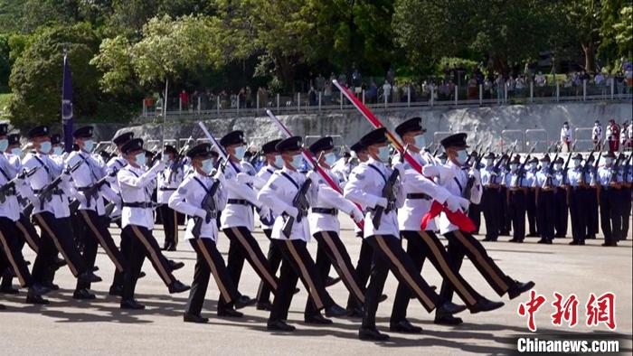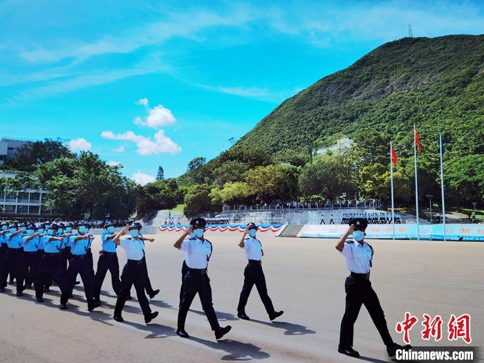 香港警察學院7月10日舉行結業典禮暨閱操儀式,其中的升旗環節首次以中式步操進行。