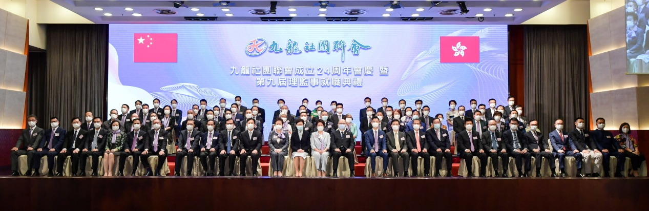 本網訊 7月19日,九龍社團聯會成立24周年會慶暨第九屆理監事就職典禮舉行。我辦秘書長王松苗應邀出席,並與行政長官林鄭月娥、駐港國安公署署長鄭雁雄、外交部駐港公署副特派員方建明等共同主禮。