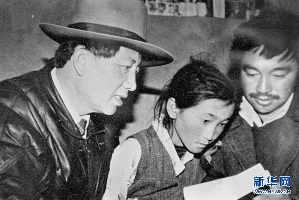 在西藏工作期間,孔繁森(左)在輔導藏族兒童讀書(資料照片)。(新華社發)