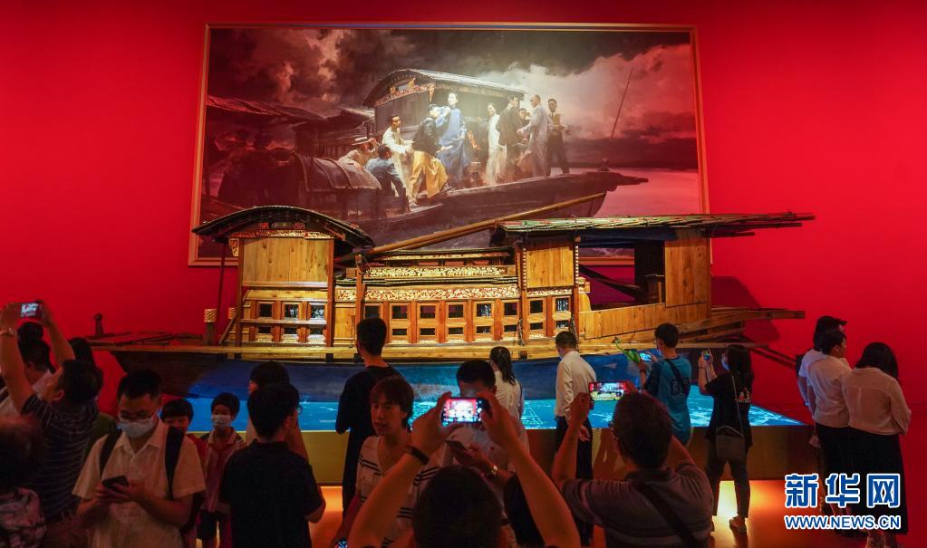 中共一大紀念館人頭攢動。鮮紅的黨旗前,參觀者重溫入黨誓詞的聲音鏗鏘有力。