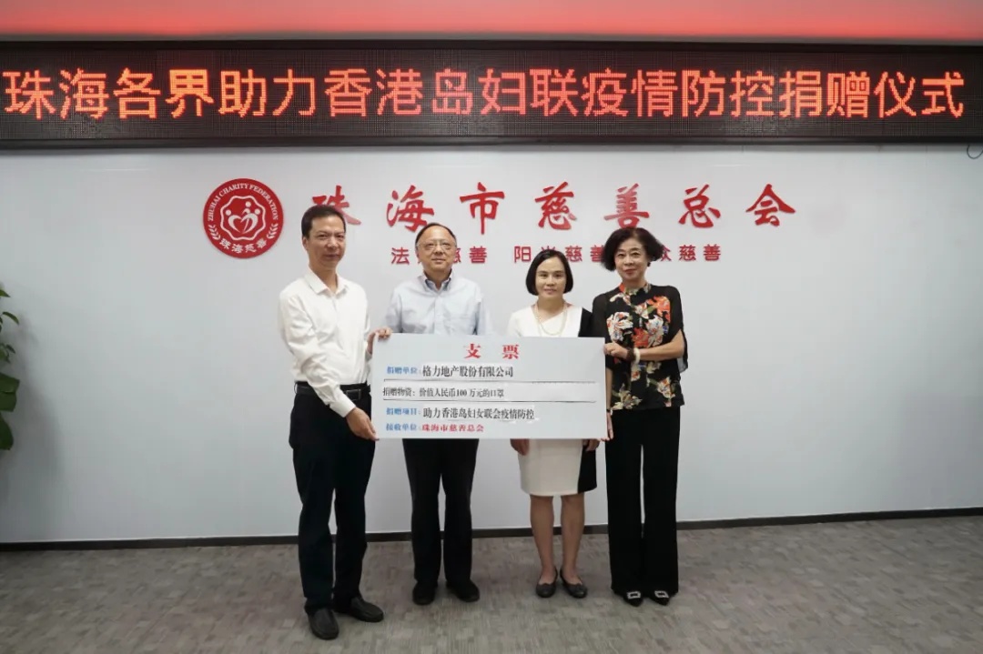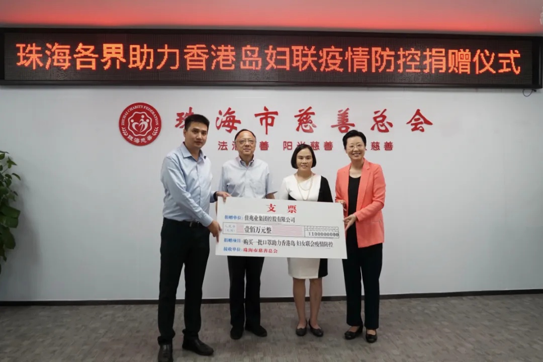 「小口罩」傳遞「大愛心」。2021年7月24日上午,珠海各界助力香港島婦女聯會疫情防控捐贈儀式在珠海市慈善總會舉行,珠海市副市長閻武出席儀式並講話,珠海市委、市政府、市婦聯、市慈善總會等發起部門及佳兆業集團和格力地産等愛心捐贈企業參加。