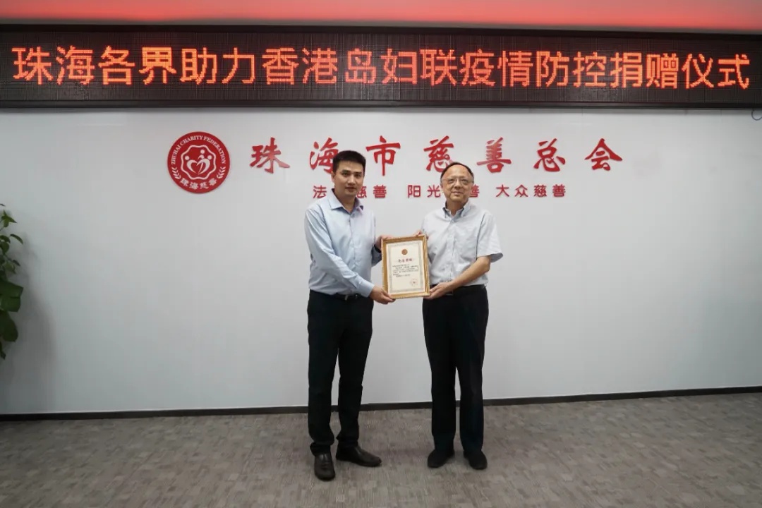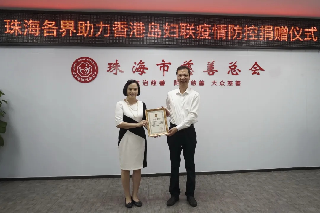 在副市長閻武,二級巡視員陳錦糧見證下,市婦聯主席玄陽、市慈善總會常務副會長王棱汸接受了愛心企業的捐贈,副市長閻武和市委二級巡視員陳錦糧向愛心企業頒發捐贈證書。愛心企業表示會繼續關注社會公益事業,為助力灣區建設,構建和諧文明社會,為珠海建設新時代現代化國際化經濟特區貢獻力量。