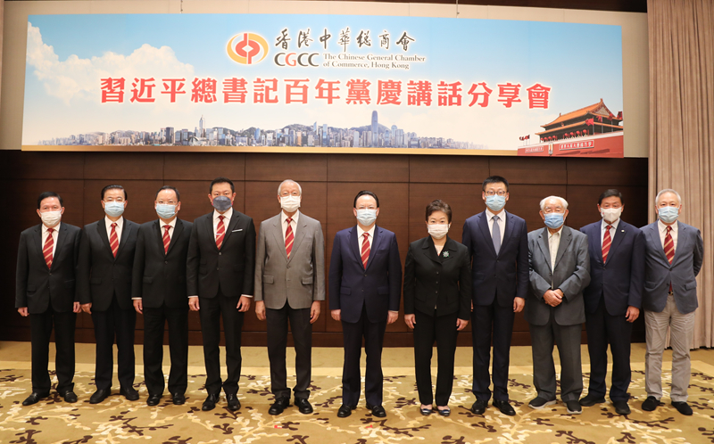 譚鐵牛指出,習近平總書記「七一」重要講話是一篇閃耀着真理光芒的馬克思主義綱領性文獻。譚鐵牛從中國共産黨應運而生、建立新中國、領導社會主義改造、開闢中國特色社會主義道路、團結帶領中國人民邁進新時代等五個方面,全面介紹了中國共産黨的百年奮鬥史,並指出香港以自己的特殊經歷融入了這部百年壯麗史詩,香港命運始終與國家緊密相連。他強調,要深刻理解和認識中國共産黨是「一國兩制」事業的開創者、發展者、捍衛者,始終堅定對「一國兩制」的信心。希望香港中華總商會在擁護中國共産黨領導、講好中國共産黨故事、落實「愛國者治港」原則、維護香港長期繁榮穩定、堅定對國家和香港未來發展信心等方面發揮帶頭作用,為「一國兩制」行穩致遠貢獻力量。