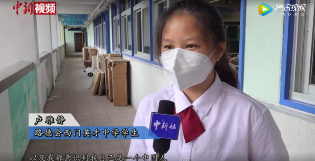 路德會西門英才中學學生盧雅靜:「在今天的課堂裏面,我學到很多尊重國家的內容,以及我都意識到我自己是一個中國人,而不(僅)是香港人,因為香港都是中國的一部分。我有看東京奧運會,當我看到在台上面領獎的是我們中國人或者是香港人的時候,我感到好感動,因為他們為國家付出了很多心血才可以拿到這面獎牌。在這次河南發生水災時,我都有捐過錢,雖然我捐的錢不多,但是都算是一份愛心,希望可以幫到他們。」