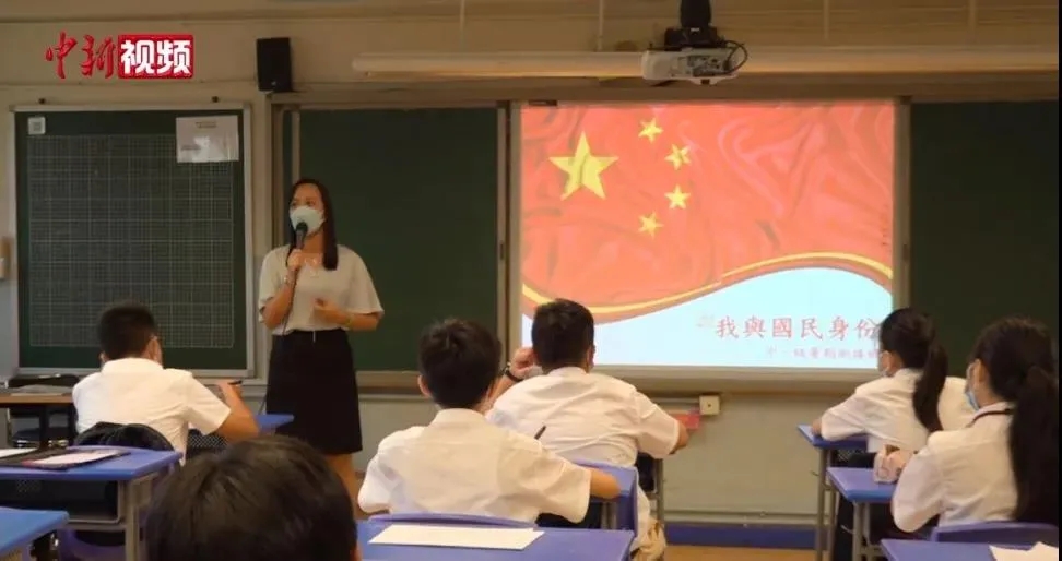 位於香港元朗區的路德會西門英才中學的教室裏,一堂主題為《我與國民身份》的課程正在展開。觀看奧運短片、看圖識別名人、分析歷史圖表、講解隨堂作業……對於剛剛升入中一年級的新生們來説,這堂步入中學的第一課讓他們感受頗深。