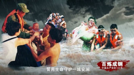 面對洶湧而至的洪峰,看守武漢市江漢區龍王廟閘口的黃義成、唐仁清、李建強等16名共産黨員以「人在堤在」決勝氣概簽下了「誓與大堤共存亡」的生死牌,誓用生命守護一城安瀾。