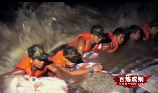 在同洪水的搏鬥中,黨和人民鑄就了萬眾一心、眾志成城,不怕困難、頑強拼搏,堅韌不拔、敢於勝利的偉大抗洪精神。