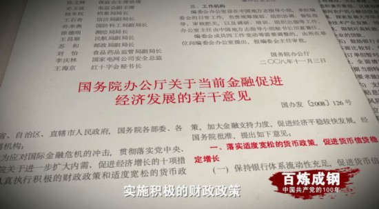 中共中央全面分析、準確判斷、從容應對,及時將宏觀調控的着力點轉到防止經濟增速過快下滑上來,實施積極的財政政策和適度寬鬆的貨幣政策,着力擴大國內需求特別是消費需求,形成了包括大規模增加政府投資、實行結構性減稅、大範圍實施十個重點産業調整振興規劃等一攬子計劃。