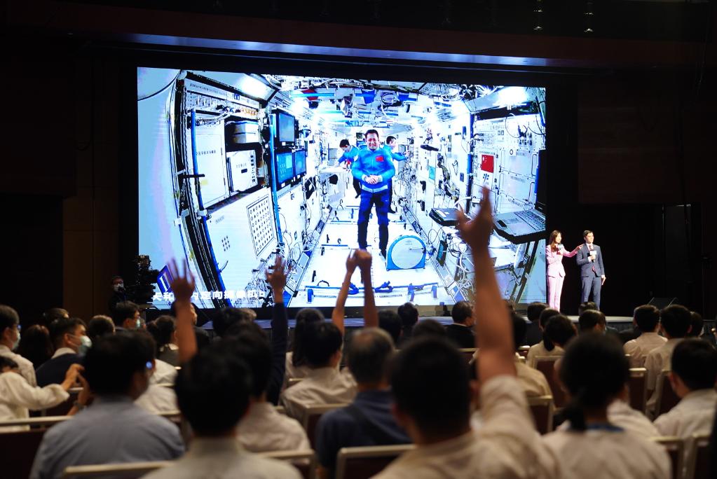 活動中,香港青年學生代表分別向北京航天專家和「太空出差三人組」——神舟十二號航天員聶海勝、劉伯明和湯洪波進行現場連線提問。有關航天專家、航天員乘組對大家普遍關心的問題進行解答和同步在軌展示。