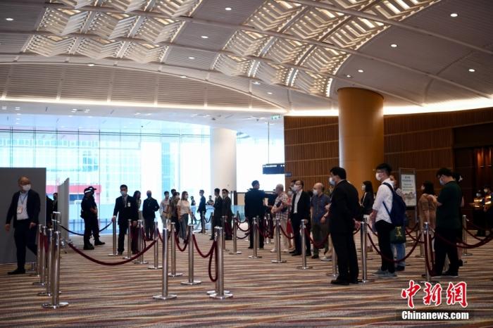 圖為香港選民排隊入場。(中新社記者 李志華 攝)