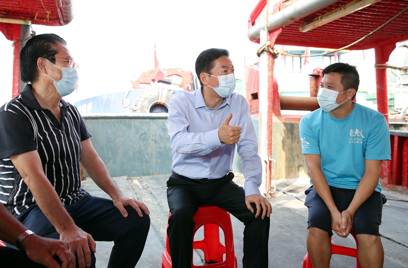 漁民張文輝告訴駱惠寧,以前香港漁業是夕陽行業,國家對香港漁業和漁民的支持政策不僅讓漁民們得到了實惠,也讓年輕人看到了發展空間,他的一些年輕親戚都在找他了解情況。