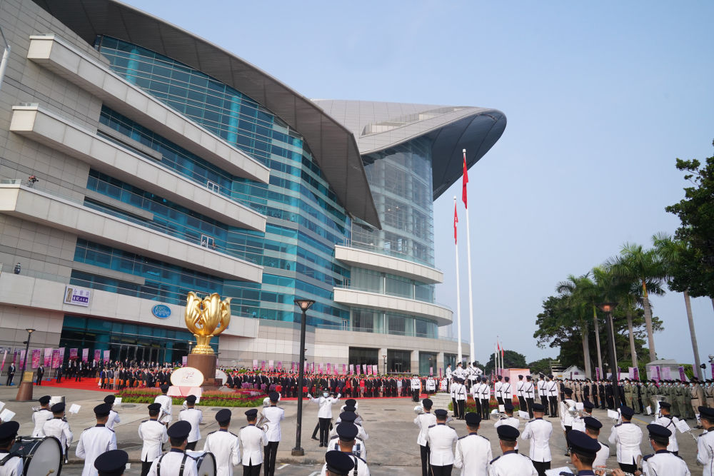 升旗儀式上午8時在金紫荊廣場舉行。全國政協副主席梁振英、香港特區行政長官林鄭月娥、香港中聯辦主任駱惠寧、中央駐港維護國家安全公署署長鄭雁雄、外交部駐港特派員公署特派員劉光源、解放軍駐港部隊司令員陳道祥、香港特區終審法院首席法官張舉能,香港中聯辦副主任陳冬、譚鐵牛、羅永綱、何靖、尹宗華和秘書長王松苗,以及特區政府主要官員、行政會議成員和社會各界知名人士等出席。