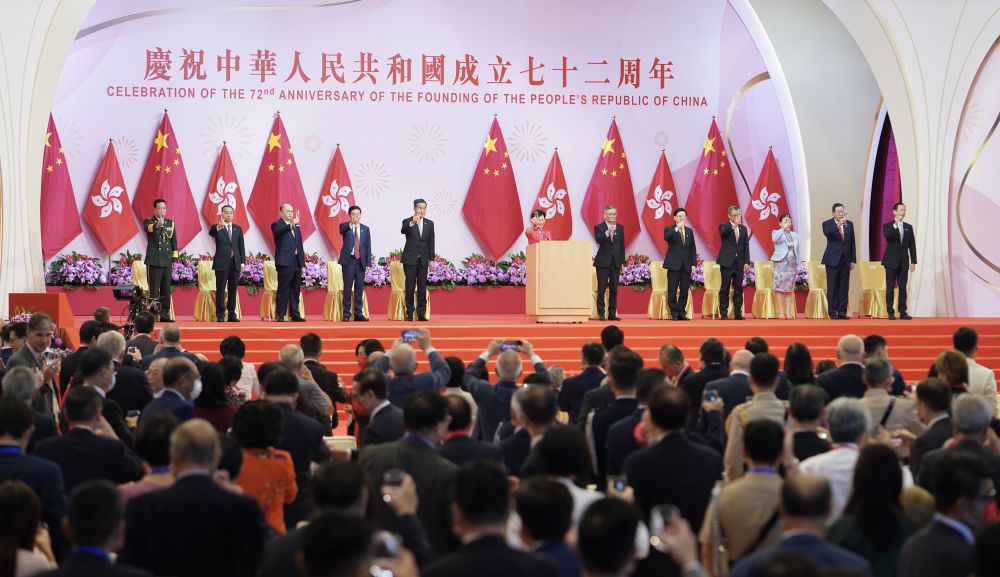 香港特區政府10月1日上午舉行升旗儀式和酒會,慶祝中華人民共和國成立72周年。