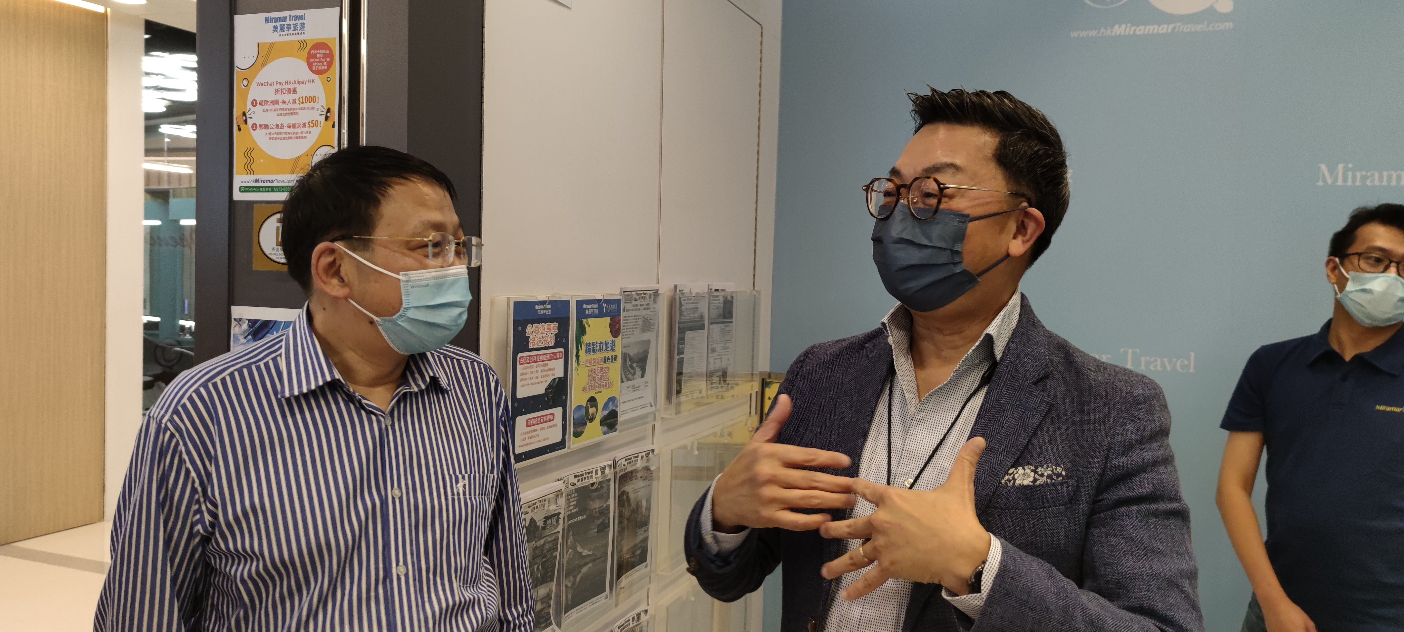 本網訊 10月4日下午,香港中聯辦副主任尹宗華在「落區聆聽 同心同行」系列活動中,走訪6家中小旅行社,了解疫情下中小企業經營狀況,聽取旅遊業界代表的意見。