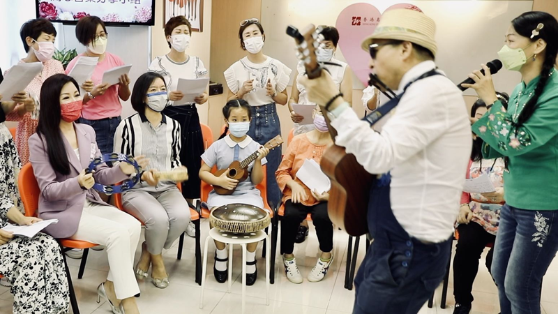 盧新寧副主任與「情緒疏導 音樂分享」課程學員合唱歌曲。(圖片來源:中央政府駐港聯絡辦)