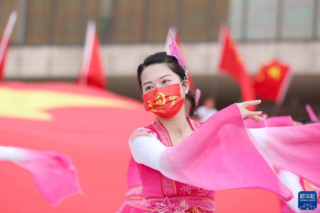 10月1日,香港市民在《我和我的祖國》的歌聲中起舞。(新華社記者 吳曉初 攝)
