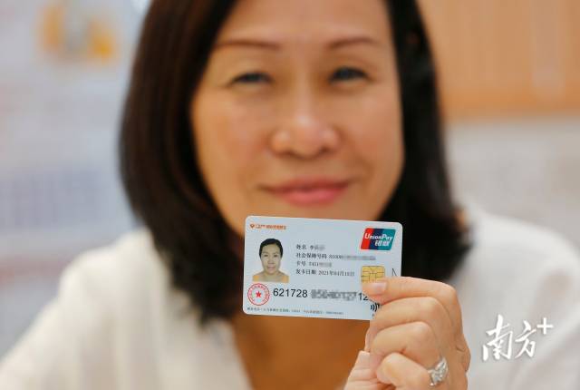 成功申辦醫保的李女士展示自己申請的醫保卡。(南方+ 葉志文 拍攝)