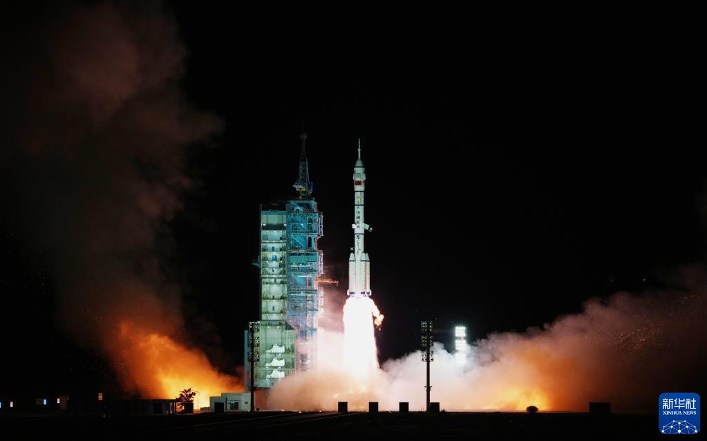 10月16日,搭載神舟十三號載人飛船的長征二號F遙十三運載火箭,在酒泉衛星發射中心點火起飛。(新華社記者 李剛 攝)