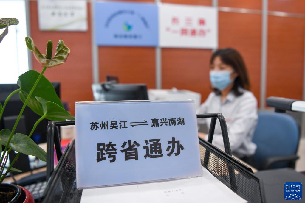 這是江蘇省蘇州市吳江區政務服務中心長三角「一網通辦」服務窗口(2020年5月28日攝)。(新華社記者 李博 攝)