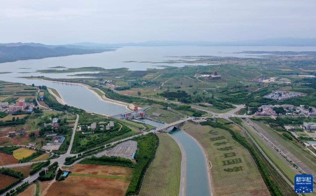 這是在河南省南陽市淅川縣拍攝的南水北調中線工程陶岔渠首(5月20日攝,無人機照片)。(新華社記者 李嘉南 攝)