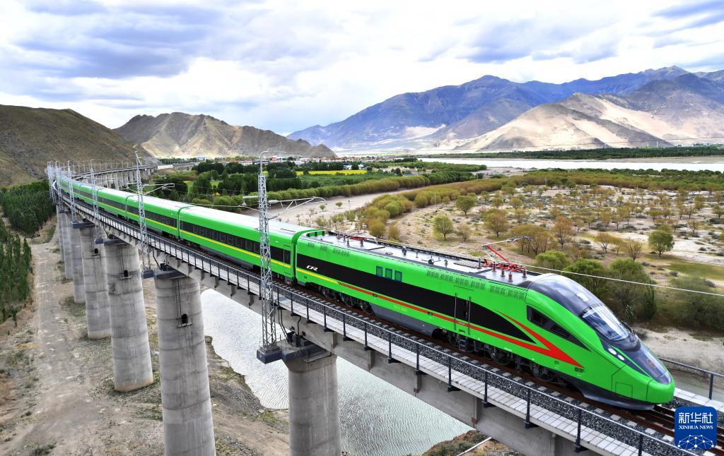 數千里之外,青藏高原。雅魯藏布江河谷中,全新的復興號列車呼嘯而過。