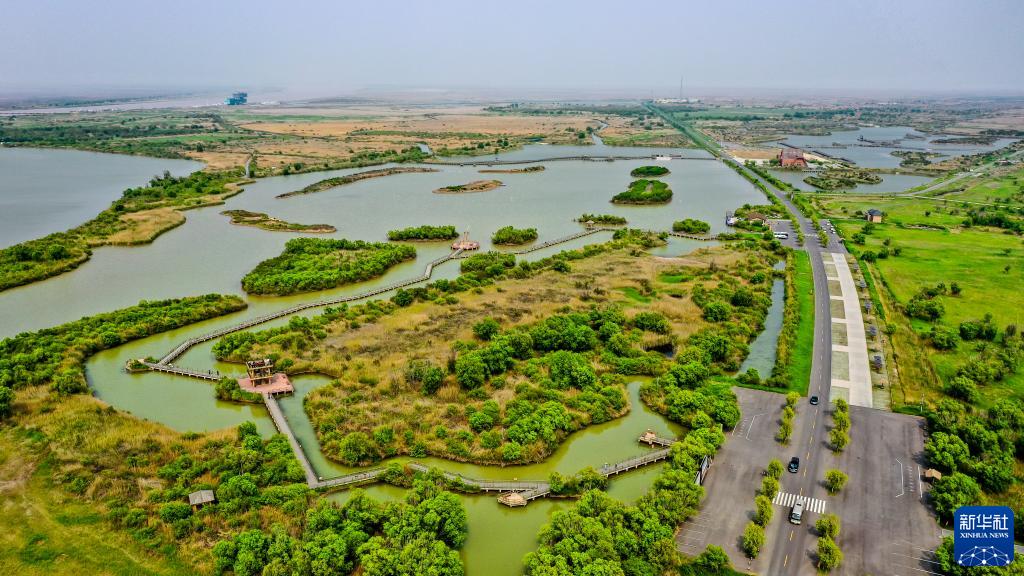 這是山東黃河三角洲國家級自然保護區景色(5月13日攝,無人機照片)。(新華社記者 郭緒雷 攝)