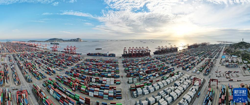 俯瞰上海洋山港碼頭(4月6日攝,無人機照片)。(新華社記者 方喆 攝)