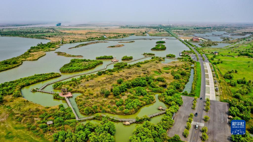 這是5月13日拍攝的山東黃河三角洲國家級自然保護區景色(無人機照片)。(新華社記者 郭緒雷 攝)