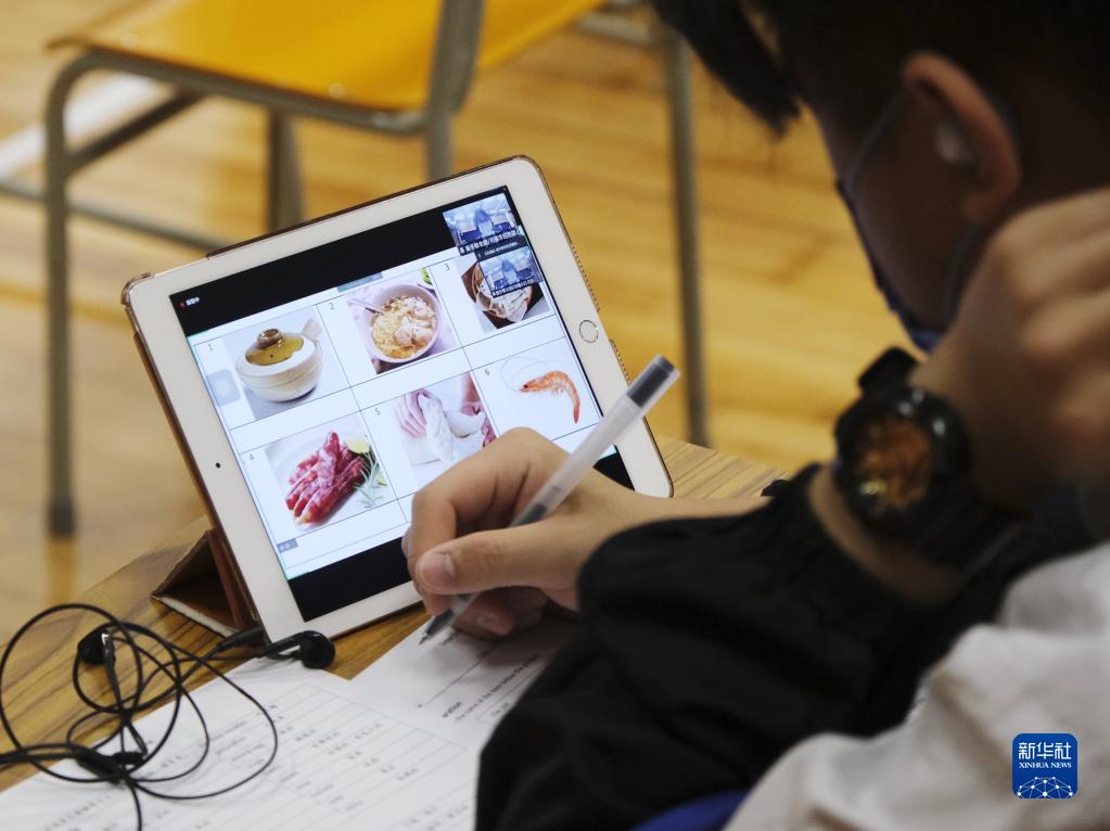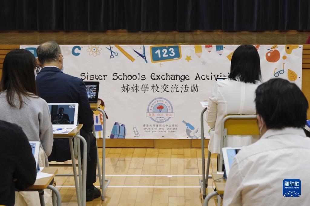 11月10日,香港扶幼會則仁中心學校的師生和姊妹學校深圳市坪山區光祖中學的師生一起通過網絡上課。(新華社記者 王申 攝)