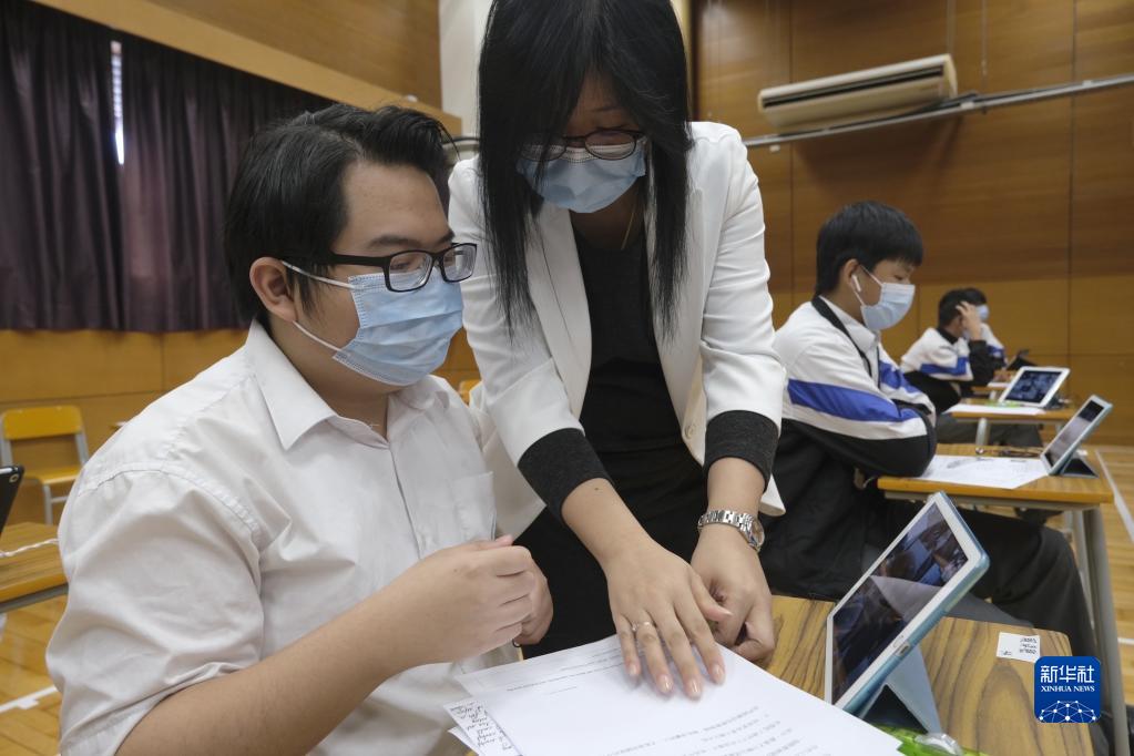 11月10日,在香港扶幼會則仁中心學校,香港中學生在網絡直播課上回答姊妹學校深圳市坪山區光祖中學老師提出的問題。(新華社記者 王申 攝)