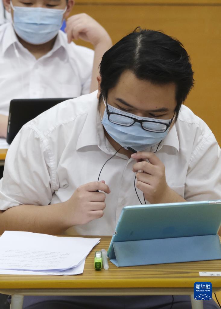 11月10日,在香港扶幼會則仁中心學校,香港中學生參加網絡直播課。(新華社記者 王申 攝)