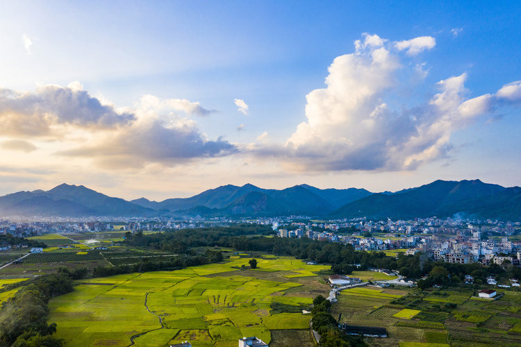 2021年11月6日,廣西梧州岑溪市歸義鎮,民居、田園與綠水青山相映成趣,構成一幅美麗鄉村畫卷。