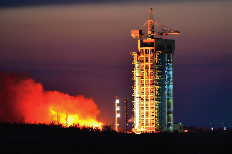 2021年12月10日8時11分,我國在酒泉衛星發射中心用長征四號乙運載火箭,成功將實踐六號 05 組衛星發射升空。這次任務是長征系列運載火箭的第 400 次飛行(汪江波 攝)