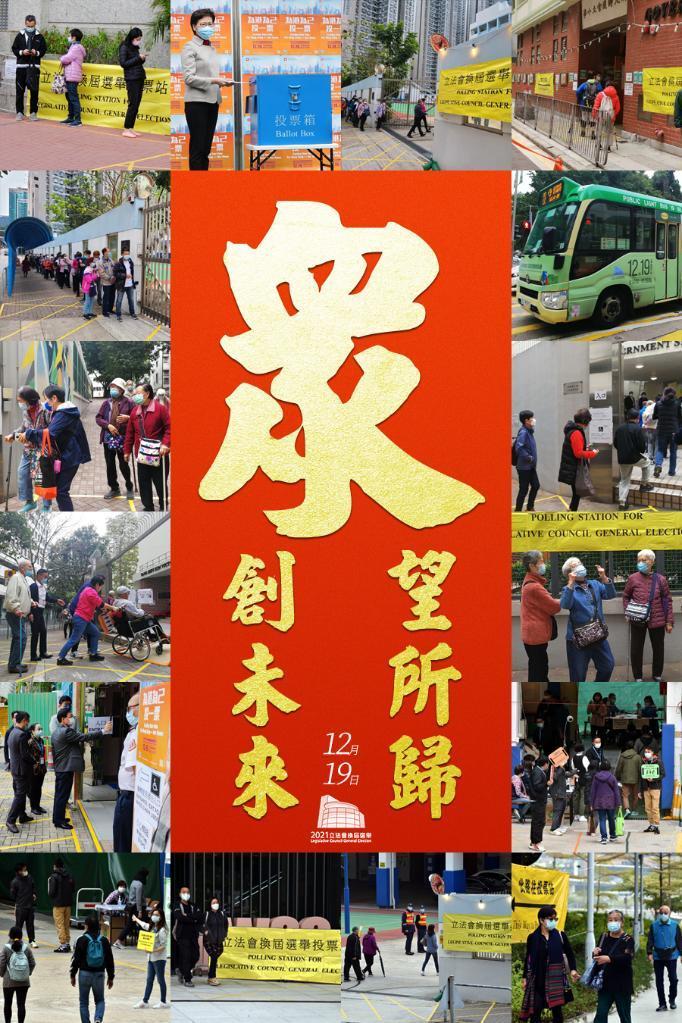 這是香港街頭的海報(12月19日攝)。香港特別行政區第七屆立法會選舉於12月19日8時30分開始投票,這是完善選舉制度後香港特區舉行的首次立法會選舉。(新華社記者 李鋼 攝)
