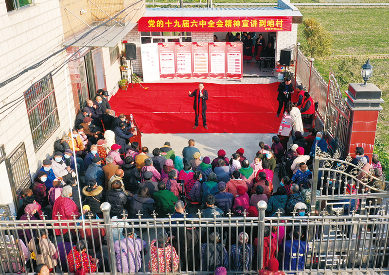 2021年12月5日,江蘇省海安市曲塘鎮群賢村開展「黨的十九屆六中全會精神宣講到咱村」活動,通過百姓名嘴宣講、文藝表演、詩朗誦等形式,向群眾宣傳全會精神。(人民視覺 姜明 攝)