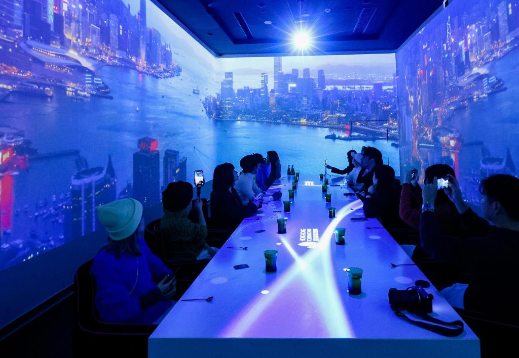 「香港美酒佳肴巡禮」上海站活動選址於上海市中心的一處西式餐廳,現場通過投影、音效、燈光等,滾動展示深受游客歡迎的香港美景和地標,同時為參與者帶來沉浸式的用餐體驗。