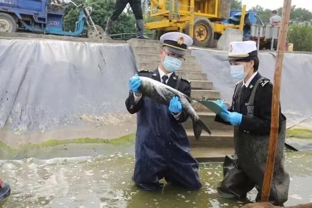 佛山海關關員對供港塘魚進行檢驗檢疫。