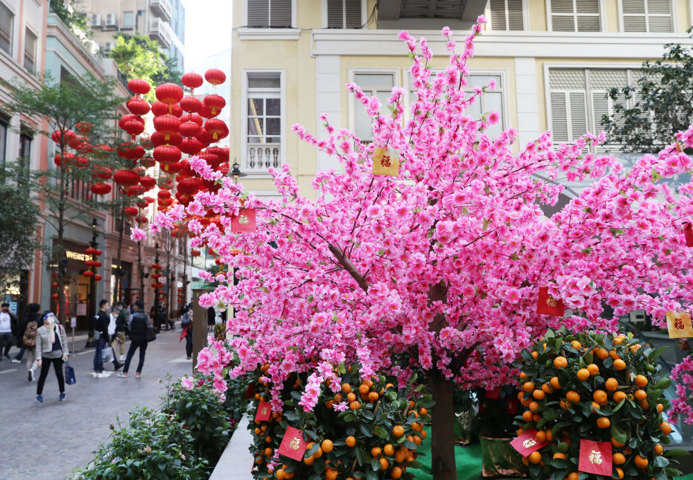 2月15日在香港利東街拍攝的節慶裝飾。當日是元宵節,香港街頭的節慶裝飾烘托出節日氛圍。(新華社記者 李鋼 攝)