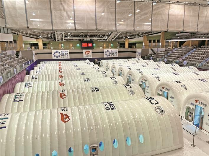 2月15日,位於香港馬鞍山體育館內的華大氣膜「火眼」實驗室重新啟用,每日可處理30萬個樣本,進一步提升香港新冠肺炎核酸檢測量。