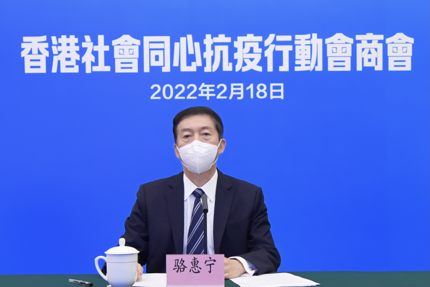 駱惠寧表示,在香港疫情爆發、抗疫形勢異常嚴峻的緊要關頭,習近平總書記對香港抗疫工作作出重要指示,提出「三個一切」「兩個確保」的重大要求,充分體現了中央對香港同胞的深切關懷,對香港疫情形勢的科學把握,對香港防疫抗疫的強力支持,為香港社會同心抗疫、共克時艱指明了努力方向、堅定了必勝信心、匯聚了強大動力。連日來香港特區各方面積極響應,行動起來。林鄭月娥行政長官和特區政府表示切實擔負起主體責任,全力推進抗疫工作。立法會高效審議通過第六輪防疫抗疫基金撥款申請,不少議員提出了建設性意見,體現了立法與行政互相配合、攜手抗疫的擔當作為。醫護人員在抗疫一線,不辭辛勞,努力守護市民健康安全。愛國愛港政團社團、駐港中資企業等也各盡其能,傾力為抗疫提供支援服務。